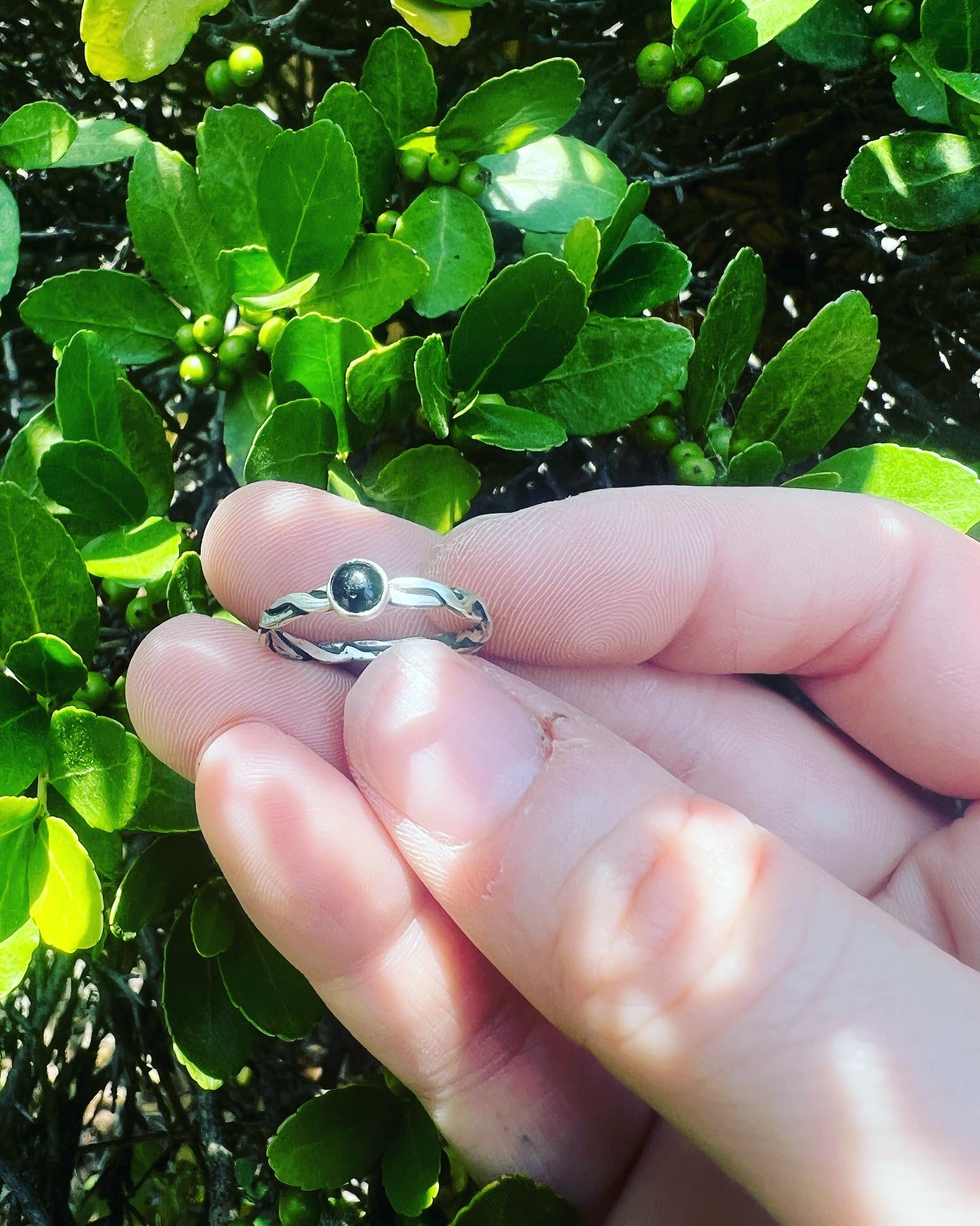 Woven band ring with a Black Onyx accent stone. Size 6.5.