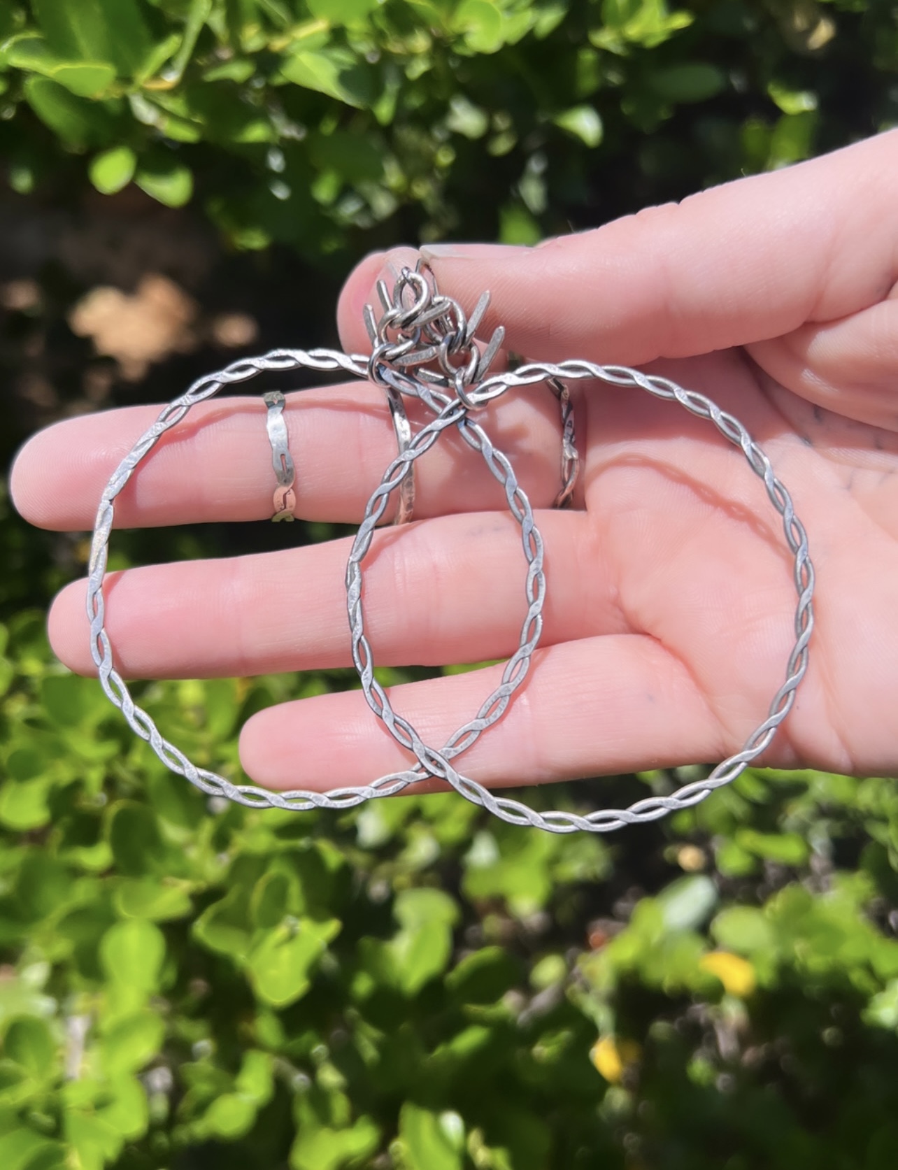 Hammered sterling silver hoops, 3 inches width. Extremely light.